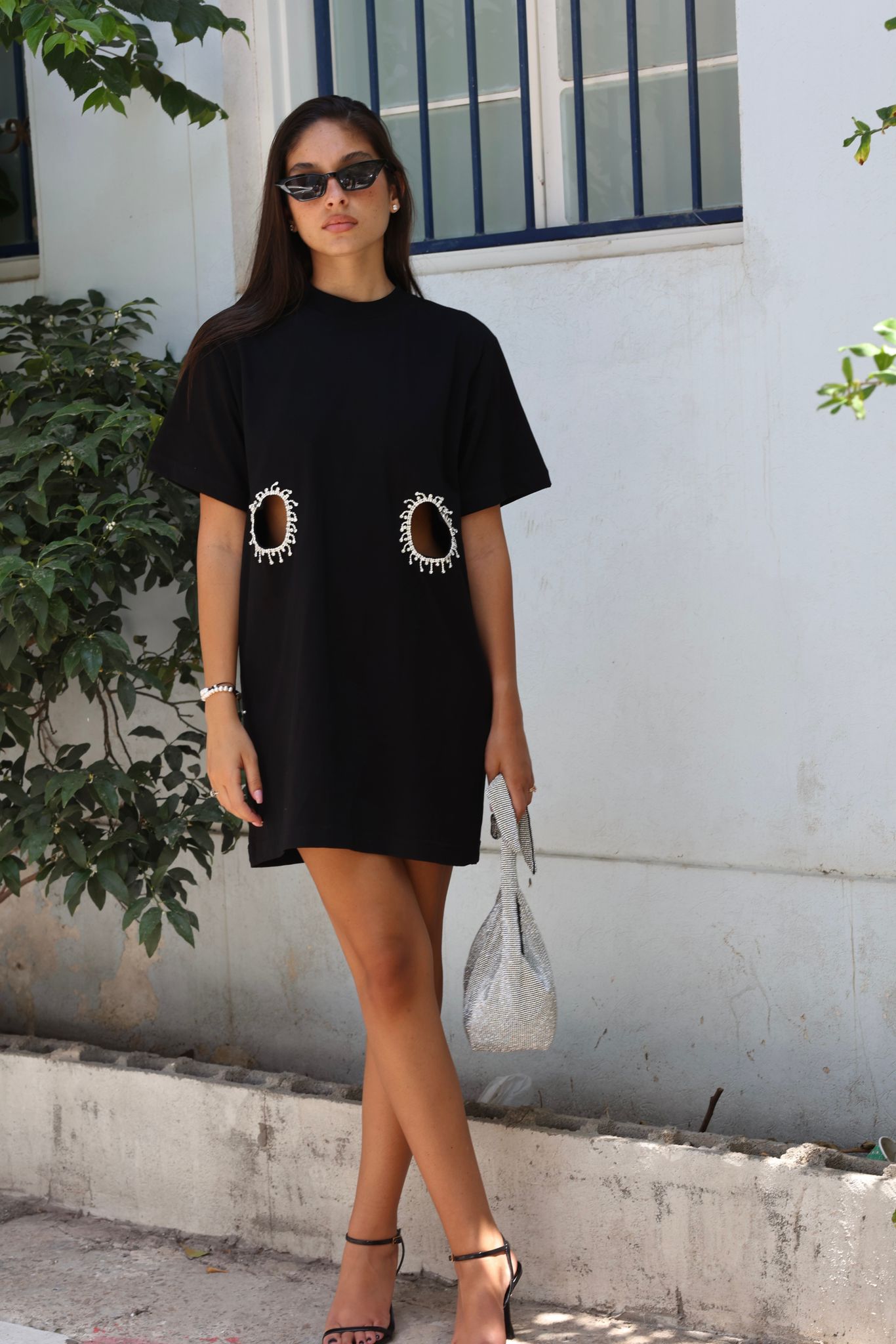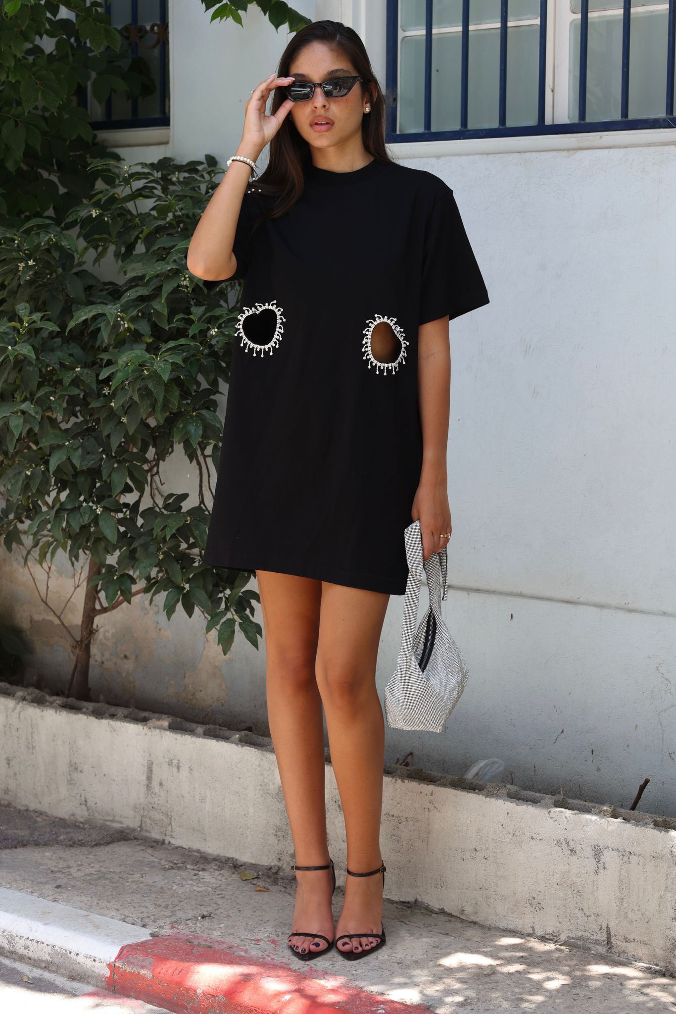 פתחים בצורת ♥ במותניים עם גימור שרשרת אבנים